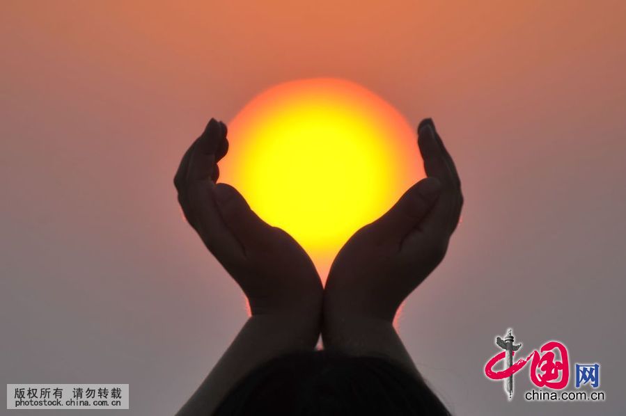 奧帆中包養網評價間包養網戀包養網心得人壩上,一名游客用雙手托起海上落日攝影(攝影 中國網包養app圖片庫包養網包養網/王包養網站海濱)
